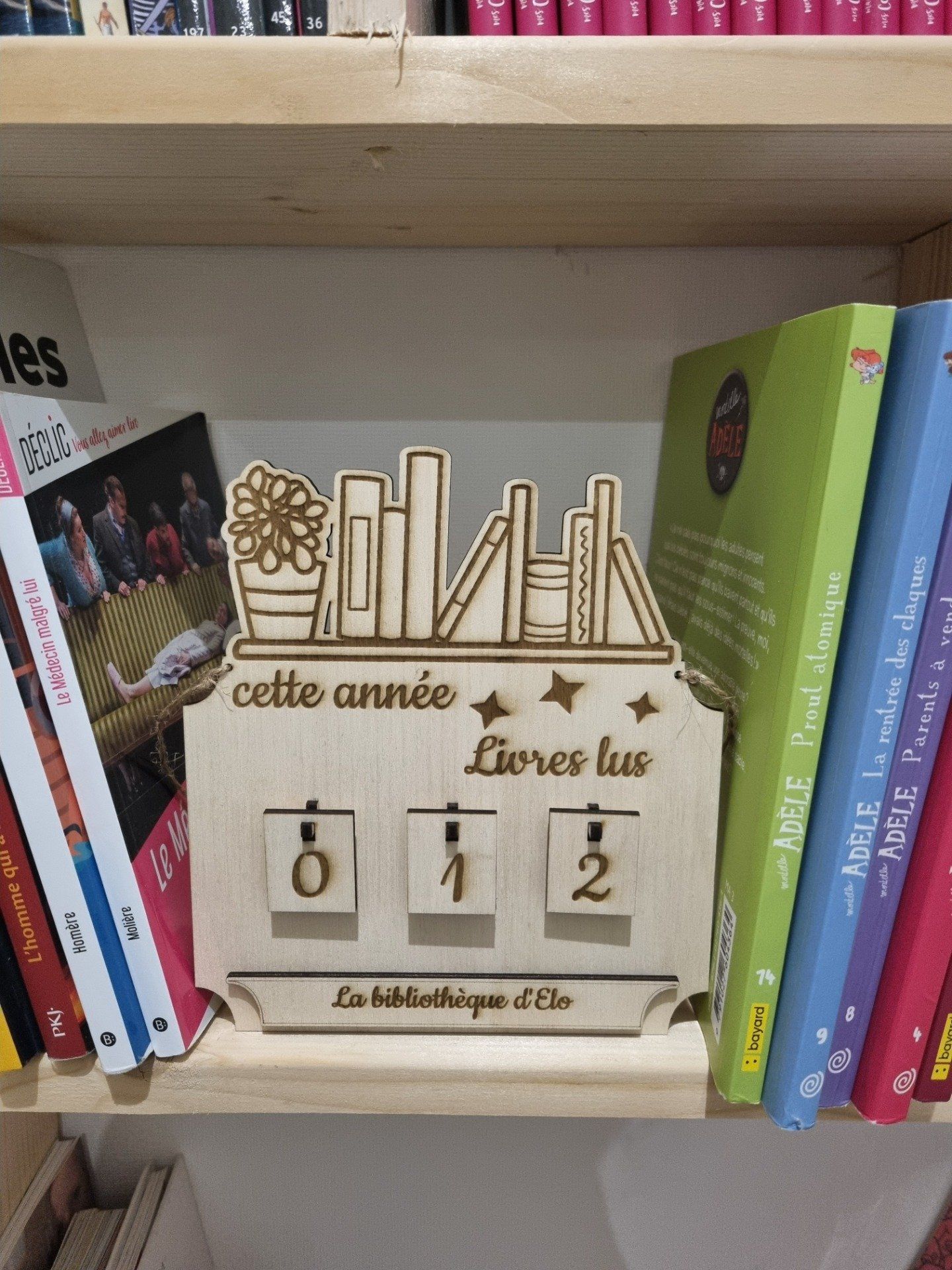 Ce compteur de livres en bois, au design épuré et chaleureux, n'est pas qu'un simple accessoire : c'est le témoin de votre année littéraire.