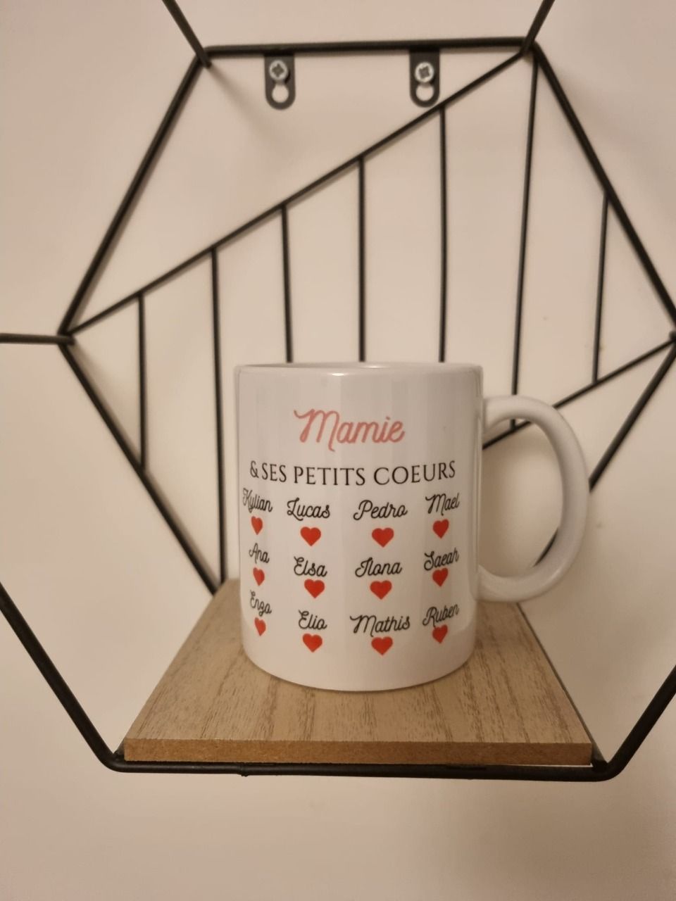 Mug personnalisée avec les prénoms des petits enfants.